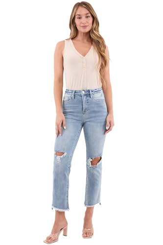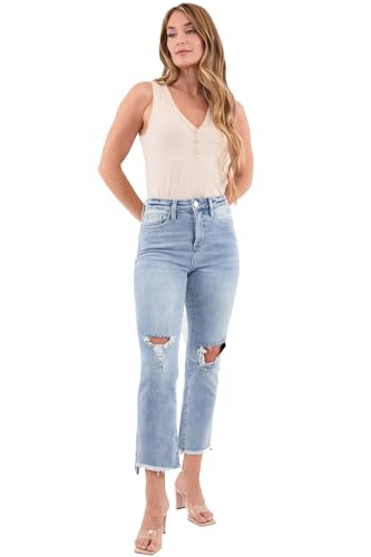 HOT ! RFM Dylan High Rise Slim-Fit Straight Crop Fray Jeans with Built-in Tummy Control - Premium Stretch Denim (Available in Plus)