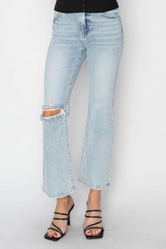 HOT ! SALT TREE Risen Jeans - High Rise Distressed Ankle Flare Jeans - RDP5696L