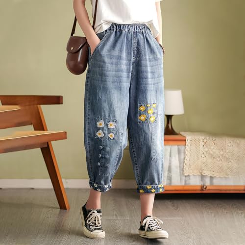 • ❤ 【Style Features】 Elastic Waist ,Beautiful Embroidered,Side Pockets;A must-have womens jeans in your wardrobe.Don't worry about embroidery, it can withstand washing.