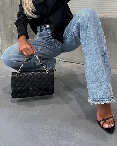 Women's Vintage High Waisted Stretchy Straight Leg Jeans Trendy Loose Washed Raw Hem Wide Leg Denim Pants 4