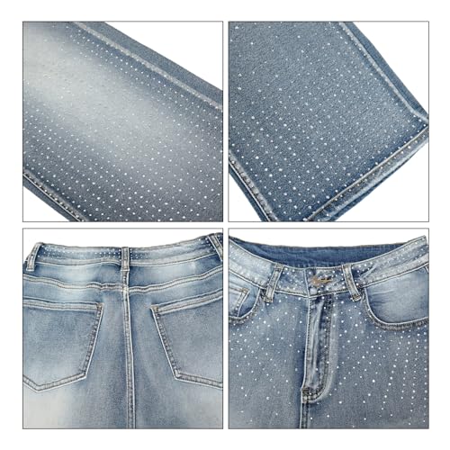 More information about Womens Rhinestone Jeans High Waist Sparkly Straight Wide Leg Denim Pants Y2K Baggy Vintage Glitter Trousers