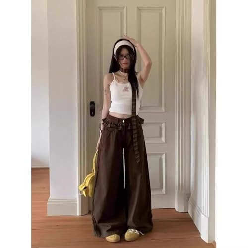 More information about Women's Checkered lace high Waisted Wide Leg Jeans, Loose and Casual Floor Length Straight Leg Pants