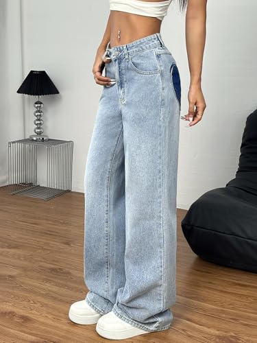 Women's Jeans with Heart Patch, Light Blue Denim,Baggy Jeans Women 7