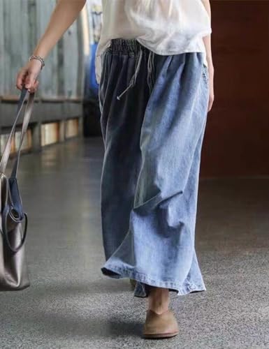 • Womens trendy high waisted drawstring loose fit flared wide leg baggy jeans for ladies/juniors/teens