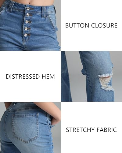 High Waisted Flare Jeans for Women Stretchy Wide Leg Distressed Raw Hem Buttonfly Denim Pants 2024 Fall Fashion 4