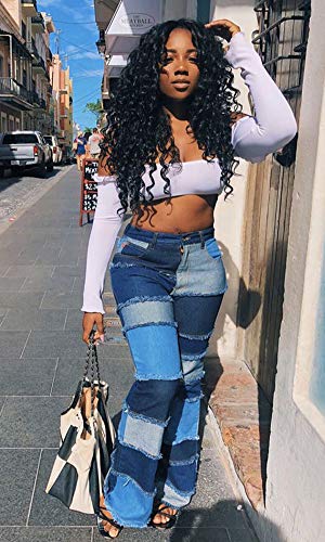 Atditama Womens Slim High Waisted Jeans Patched Distressed Hippie Wide Leg Denim Flared Bell Denim Pants 1