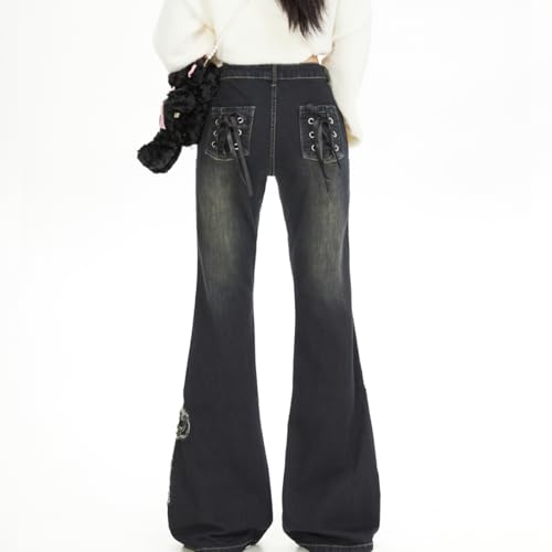 More information about Fashion Casual High Waisted Jeans for Women Y2K Vintage Cute Bow Tie Fringe Patchwork Bell Bottom Pants