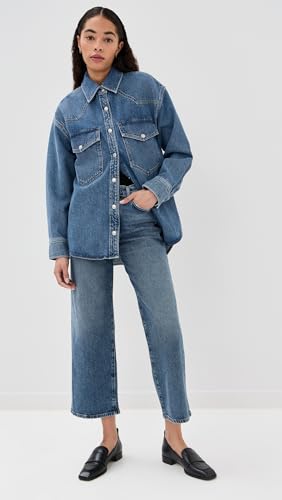 • Runs true to size, Designed with a mid rise, a wide straight leg, and a cropped inseam. Non-stretch denim has a brushed, mid-weight feel and will give with wear.