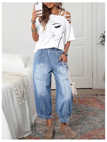 HOT ! Verdusa Women's Streetwear Washed Cropped Jeans Casual Denim Joggers with Pockets