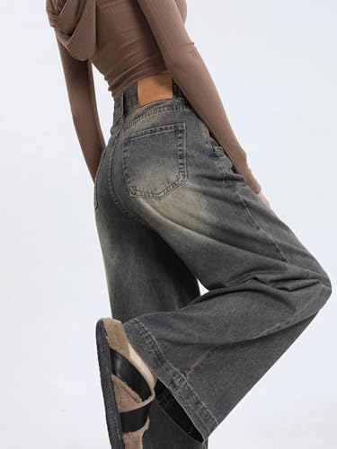 American Style Vintage Washed Wide Leg Jeans for Women Korean High Waist Loose Straight Casual Pants 4
