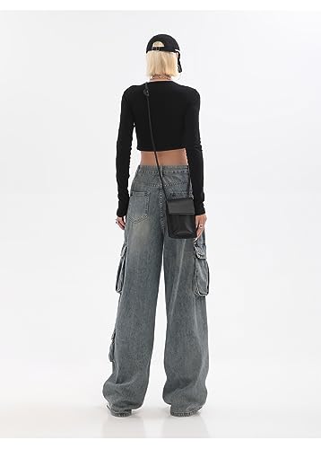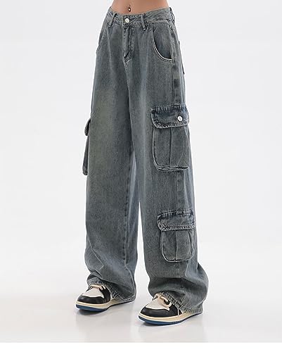 HOT ! Baggy Jeans Y2K Emo Denim Pant with Side Pocket Hippie Cargo Gothic Alt Parachute Streetwear Grunge Tripp Clothing
