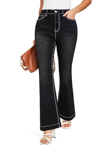 J.Corrine Women's Casual High Waisted Bell Bottom Jeans Flap Pockets Flare Leg Jeans 4