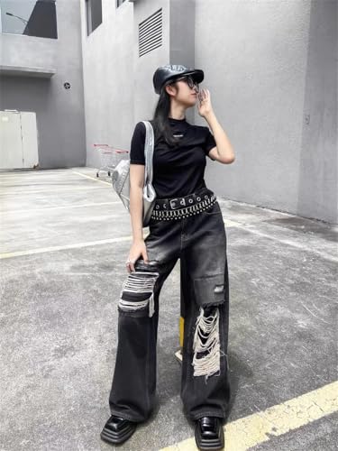 More information about Women's Black Gothic Ripped Jeans Baggy Aesthetic Denim Trousers Harajuku Oversize Jean Pants