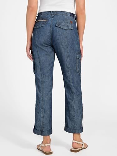 • Woven cargo pants High-rise, sits at natural waist Straight leg with button tabs and drawstring ankle cuffs Utility and cargo pocket-construction Buckled piecing at the waist sides for custom fit Zip fly with button closure