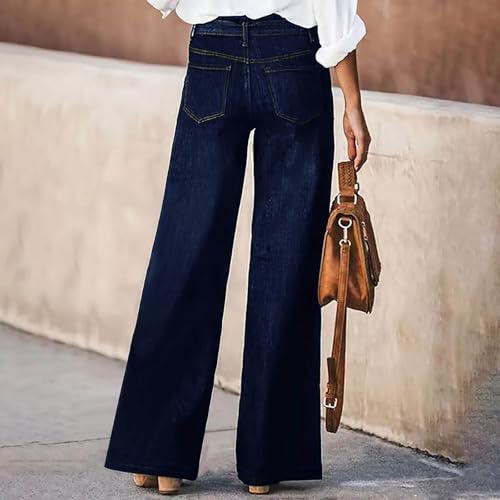 HOT ! Women's Wide Leg Jeans Casual High Waisted Stretchy Baggy Loose Fit Long Trousers Pull On Denim Pants with Pockets