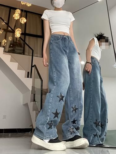 More information about Women Star Prints Wide Leg Jeans High Waist Jeans for Women Casual Loose Jeans Denim Pants Y2K Style