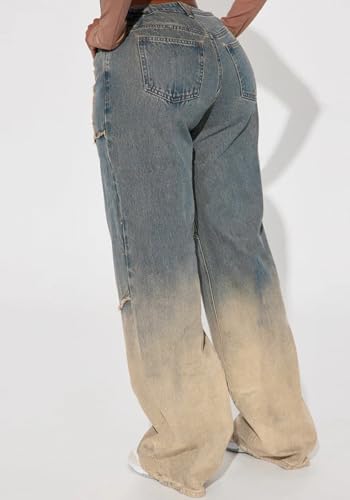 Famnbro Womens Straight Wide Leg Gradient Jeans High Waisted Denim Pants Baggy Trendy Jeans 4