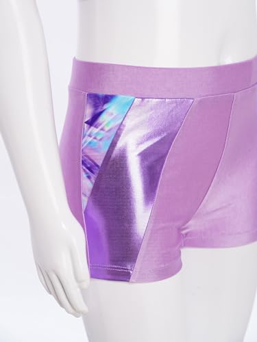 Girls Gymnastics Dance 2 Piece Shiny Metallic Set Crop Tank Top And Booty Shorts for Tennis Sports Lavender 14 Years 6