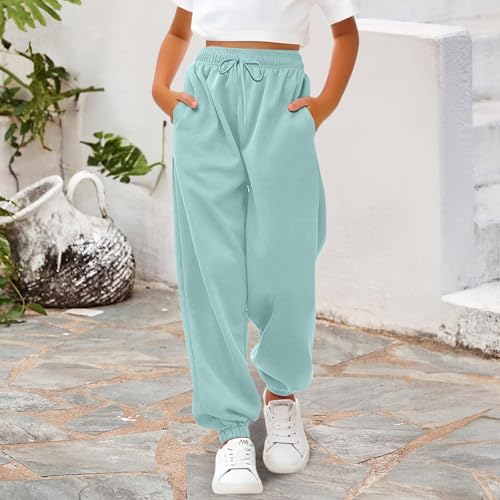 HOT ! Teen Girls Baggy Joggers Pants Drawstring Wide Leg School Sweatpants Plain Elastic Waist Loose Trousers with Pockets