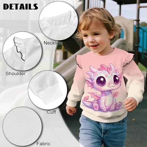 Toddler Dragon Sweatshirt for 1T-8T Girls Crewneck Tees Top Ruffle Long Sleeve Fall Sweatshirts Cute Outfits 2