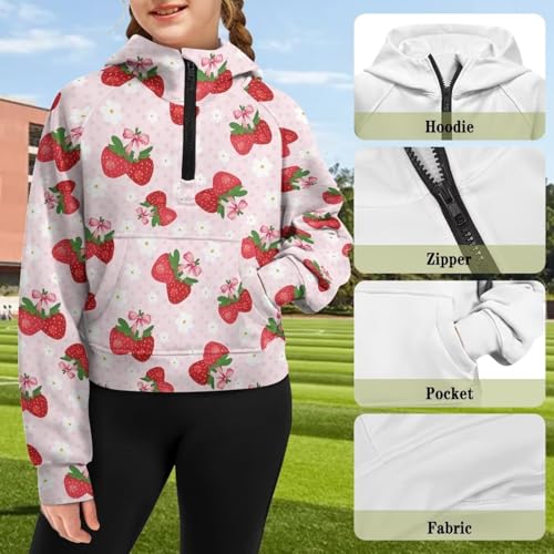 Girls' Hooded Sweatshirts 1/2 Zipper Pullover Crop Tops for Kids Long Sleeve Sweatshirt with Kangaroo Pocket 4
