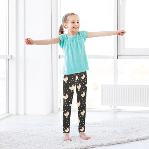 Rooster Print Girls Leggings Ultra Soft Compression Yoga Gym Pants for Kids 4-10T 6