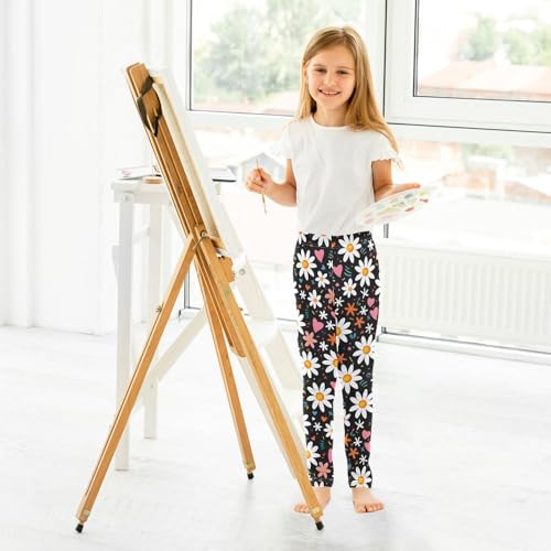 White Chrysanthemum Floral Love Heart Girls Leggings Ultra Soft Compression Yoga Gym Pants for Kids 4-10T 7