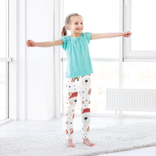 Cartoon Bear Rainbow Girls Leggings Ultra Soft Compression Yoga Gym Pants for Kids 4-10T 6