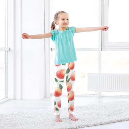Pink Peach Fruit Girls Leggings Ultra Soft Compression Yoga Gym Pants for Kids 4-10T 5
