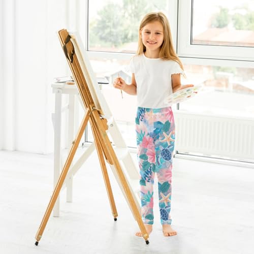 Sea Turtle Starfish Coral Floral Girls Leggings Ultra Soft Compression Yoga Gym Pants for Kids 4-10T 5