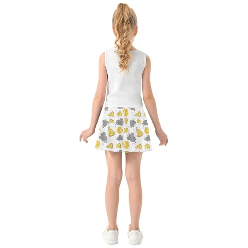 Girls Skorts High Waist Athletic Skirts with Shorts Cartoon Mouse Cheese Stretchy Teens Performance Tennis 1