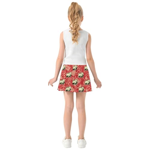 HOT ! Girls Skorts High Waist Athletic Skirts with Shorts Camera Red Stretchy Teens Performance Tennis