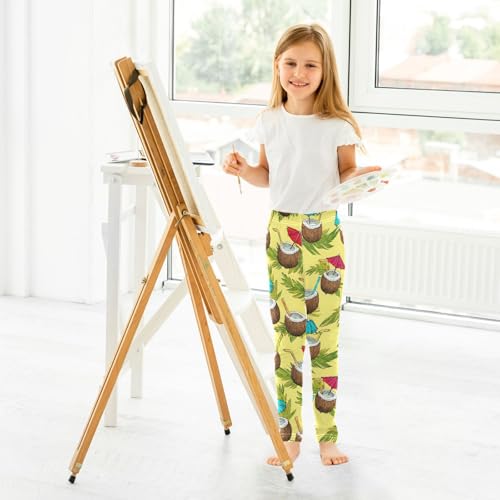 Coconut Drinks Green Leaf Girls Leggings Soft Stretch Workout Yoga Dance Pants for Kids Casual Tights 4