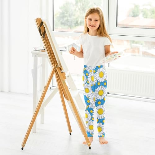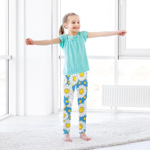Blue Chrysanthemum Flower Girls Leggings Soft Stretch Workout Yoga Dance Pants for Kids Casual Tights 4