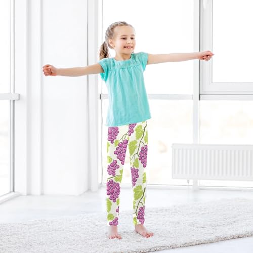 Purple Grape Green Leaf Girls Leggings Soft Stretch Workout Yoga Dance Pants for Kids Casual Tights 6