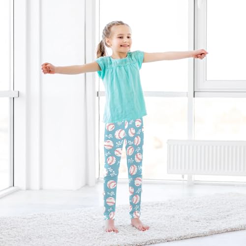 Blue Baseball Softball Leaf Girls Leggings Soft Stretch Workout Yoga Dance Pants for Kids Casual Tights 6