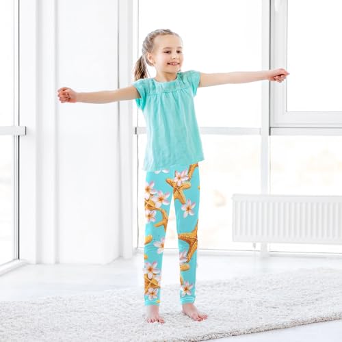 Yellow Starfish Plumeria Flower Girls Leggings Soft Stretch Workout Yoga Dance Pants for Kids Casual Tights 6