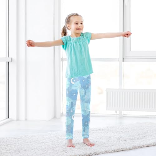 Fantasy Blue Flower Moon Girls Leggings Soft Stretch Workout Yoga Dance Pants for Kids Casual Tights 6