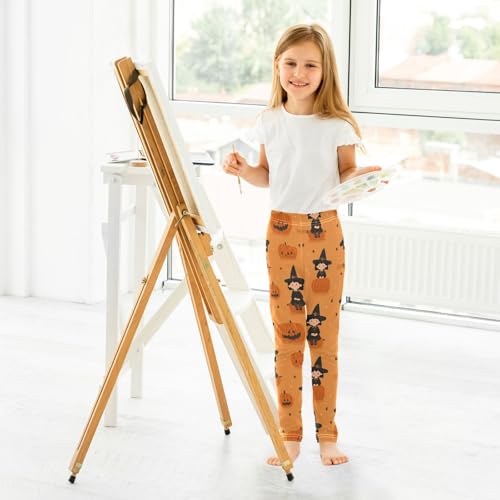 Orange Pumpkin Witch Star Girls Leggings Soft Stretch Workout Yoga Dance Pants for Kids Casual Tights 6