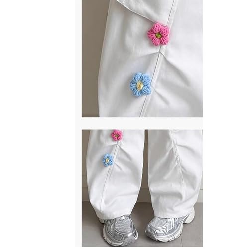 More information about Girls Baggy Sweatpants Cargo Wide Leg Elastic Waist Pink Y2K Athletic Joggers Dance Running (White, 15-16 Years)