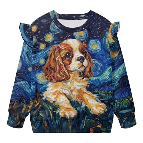 Xpyiqun Ruffle Sweatshirts Size 1-8 Years Lightweight Crewneck Pullover Tops for Girls Kids Long Sleeve T-Shirts 6