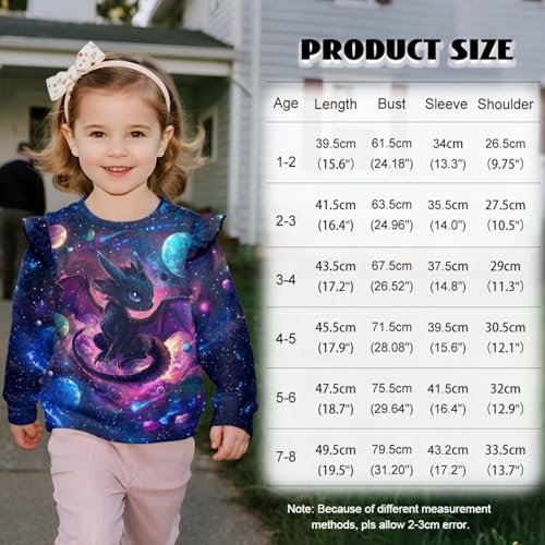 Xpyiqun Galaxy Pullover 1-8 Years Ruffle Shoulder Sweatshirts for Girls Long Sleeve Shirts Round Neck Top 6