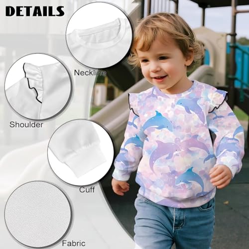 Girls Long Sleeve Ruffle Shirts Comfy Crewneck Tops Soft Lightweight Blouses Outfits Bright Print Casual Apparels 2