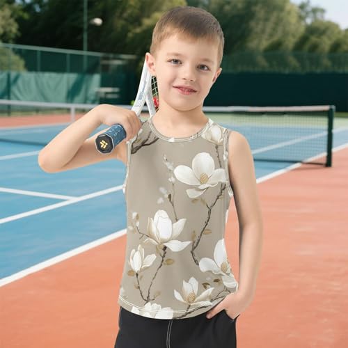 susiyo White Magnolia Flowers on Beige Boys Sleeveless Tank Top Girls Athletic T Shirt 6