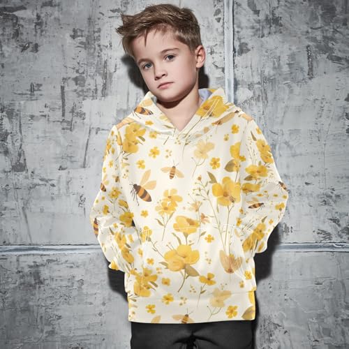KLL Embroidery Bee Butterfly Flowers Watercolor Toddlers and Boys' Sweatshirts Sweater Casual Pullover Hoodie Kangaroo 1