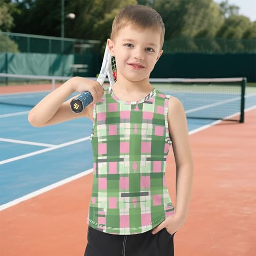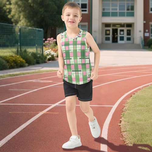 JUNZAN Green Pink Checkered Children Tank Top Sleeveless Summer Vest Tee Toddler Crewneck T-Shirts for Running Hiking 3T 5