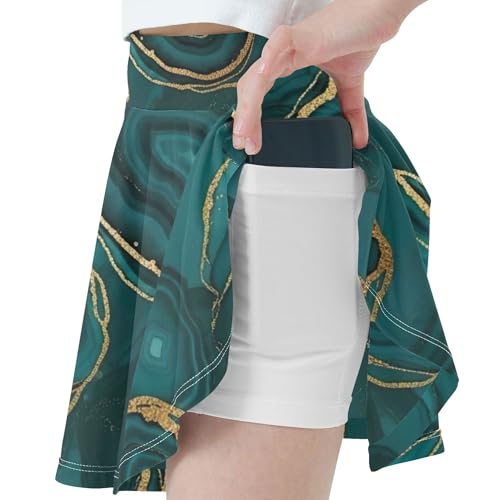 Joisal Colored Athletic Shorts for Girls Skorts Toddlers Tennis Skirts School Deep Teal Marbled Textures Gold 4t 6