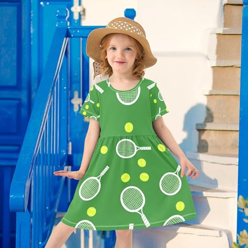 Tennis Rackets Balls Green Toddler Girls' Dresses Summer Clothes Kids Spring Dresses Little Girl Dress 2t 7