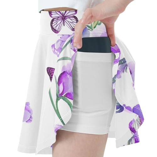 Athletic Shorts Girls Skorts Tennis Skirts for Kids Rainbow Butterfly Watercolor Purple Flowers Butterflies 3t 4