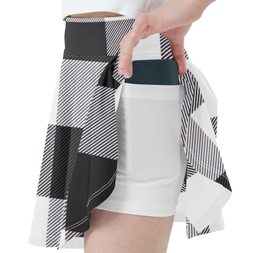 Black White Buffalo Plaid Athletic Shorts Girls Skorts Tennis Skirts Toddler Dance Golf Flowy Skort 3t 5